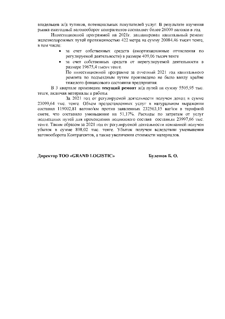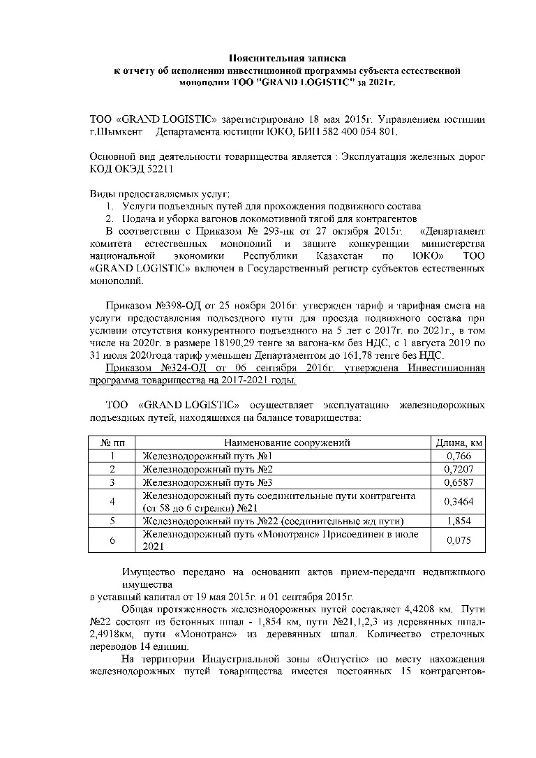 Пояснительная записка по ГЛ отчет по ИП за 2021 год - ТОО GRAND LOGISTIC