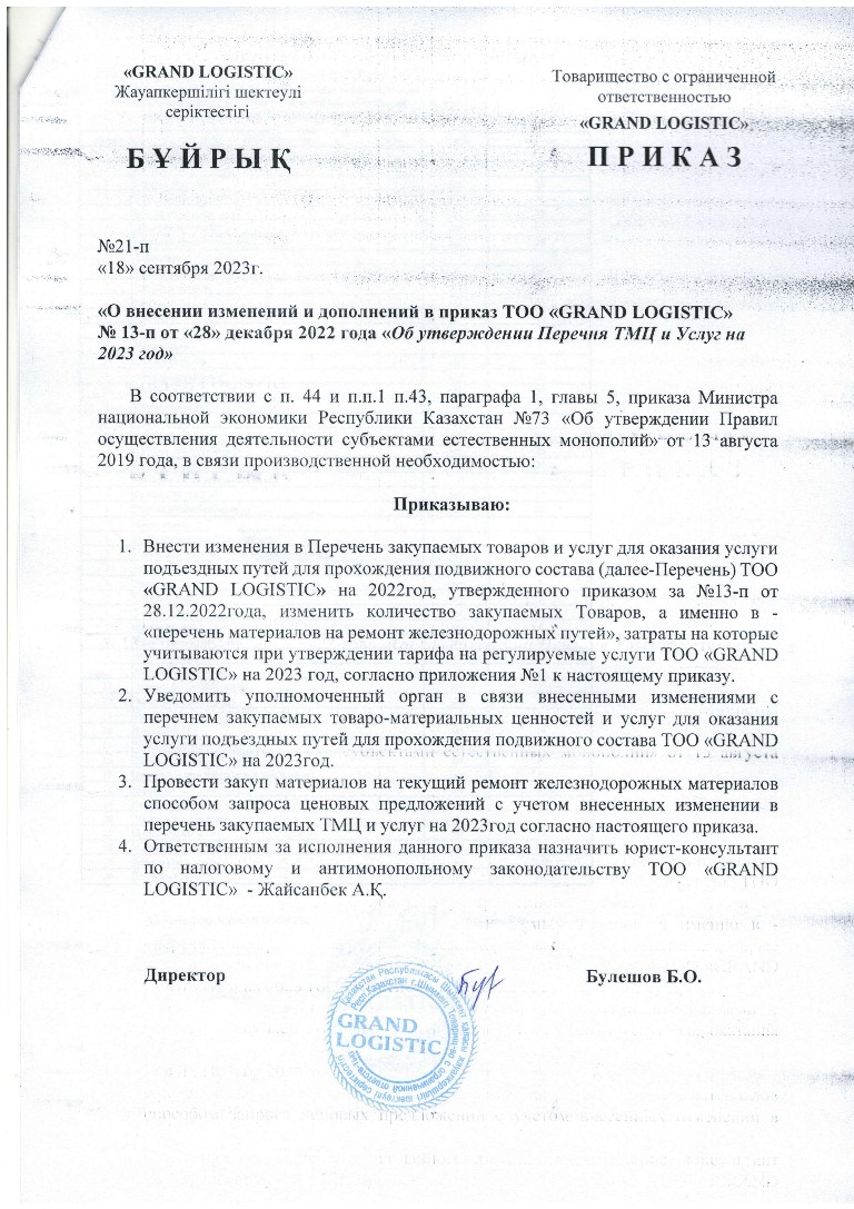 Приказ об утвержд переч-я закупа на 23год - ТОО GRAND LOGISTIC