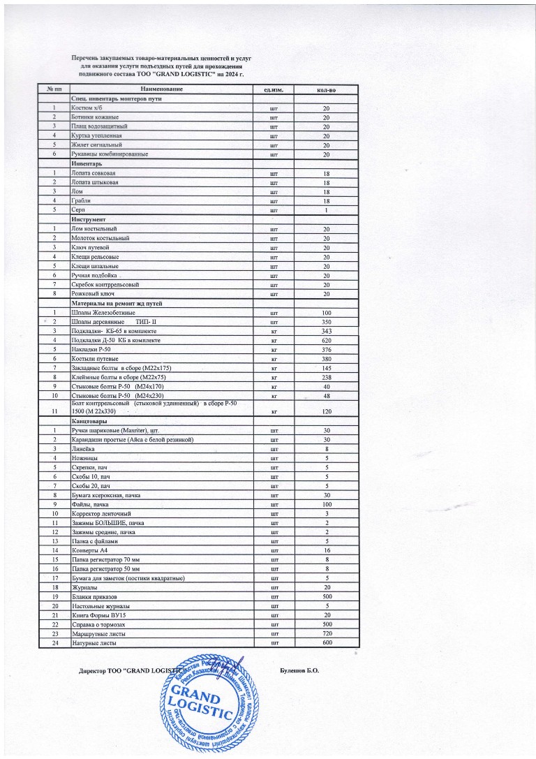 Объявление закуп ТОО Grand Logistic-24год