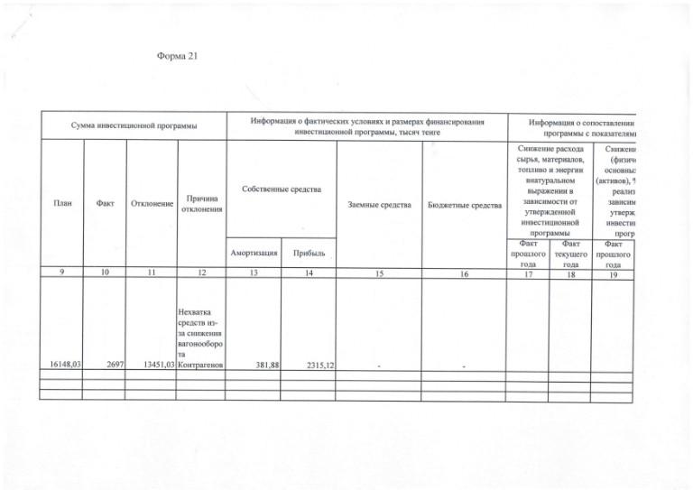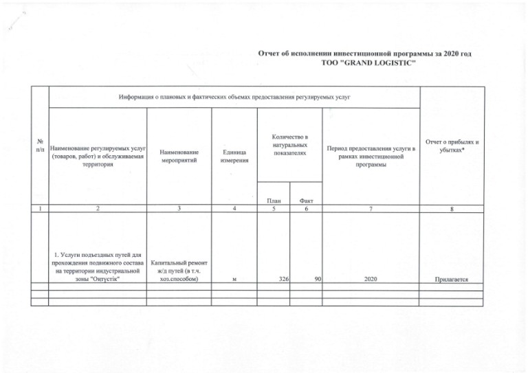 Отчет об исполнении инвест.прогр. - ТОО GRAND LOGISTIC