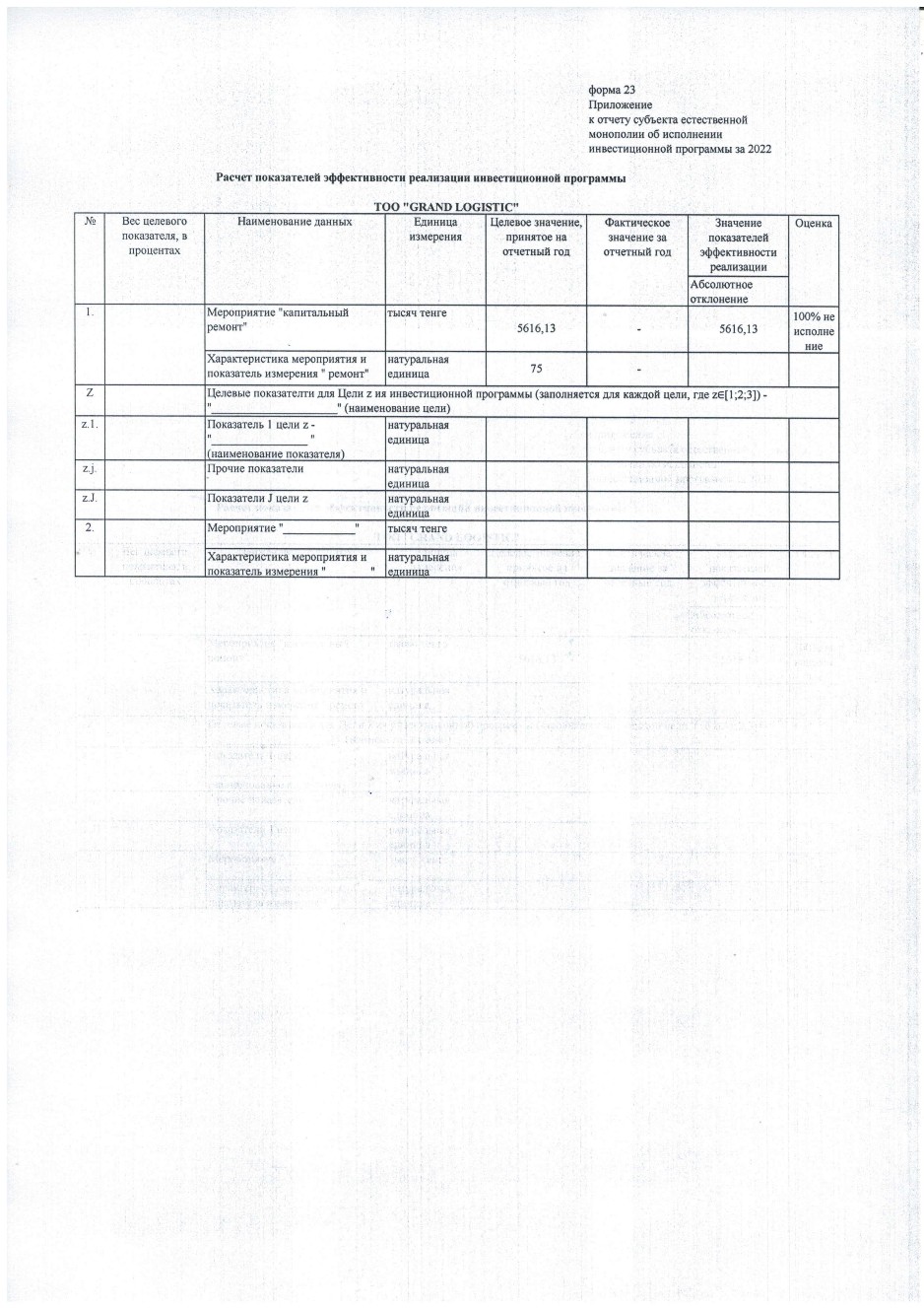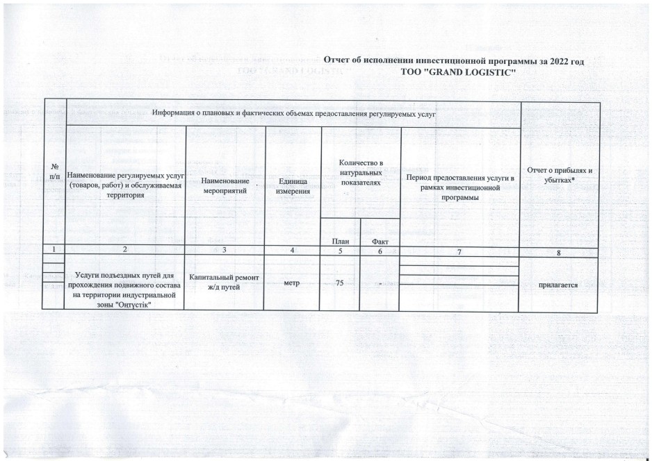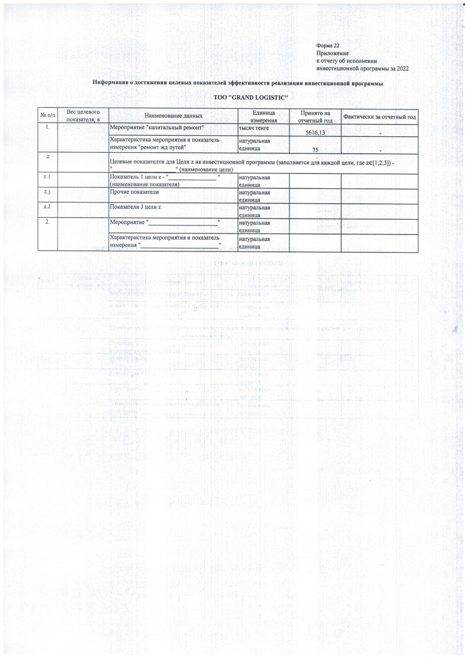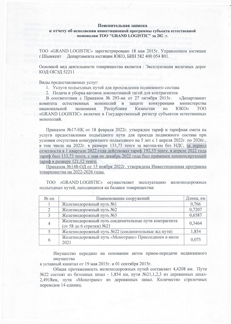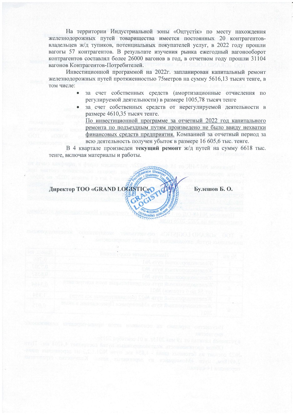 Отчет об исполнении ИП за 2022 год - ТОО GRAND LOGISTIC