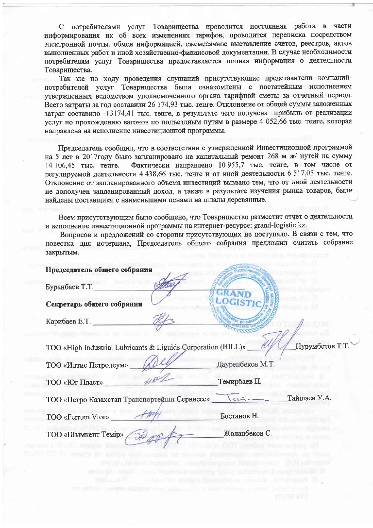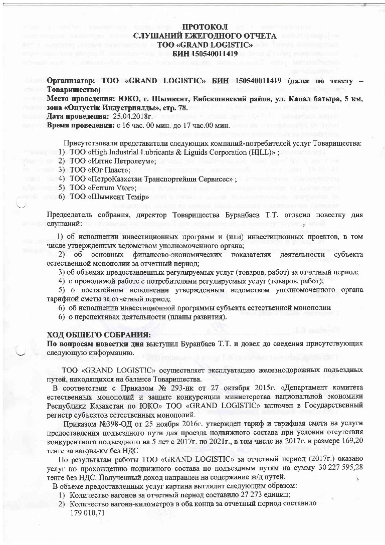 Протокол слушаний ежегодн. отчета - ТОО GRAND LOGISTIC
