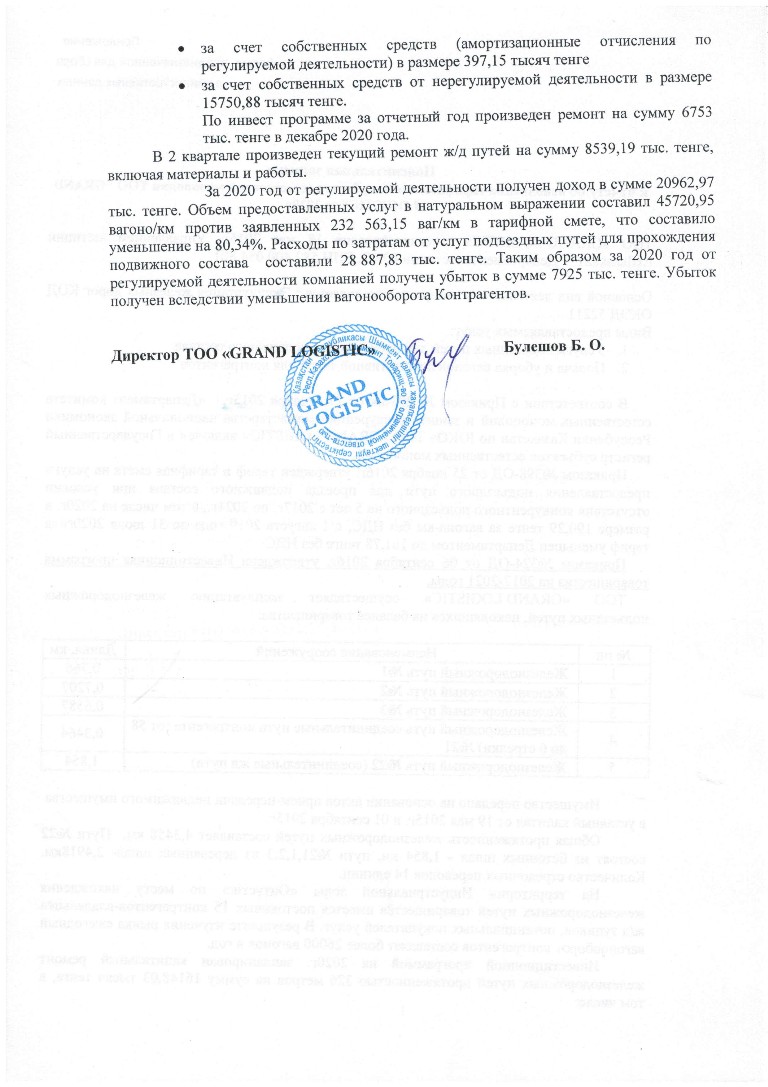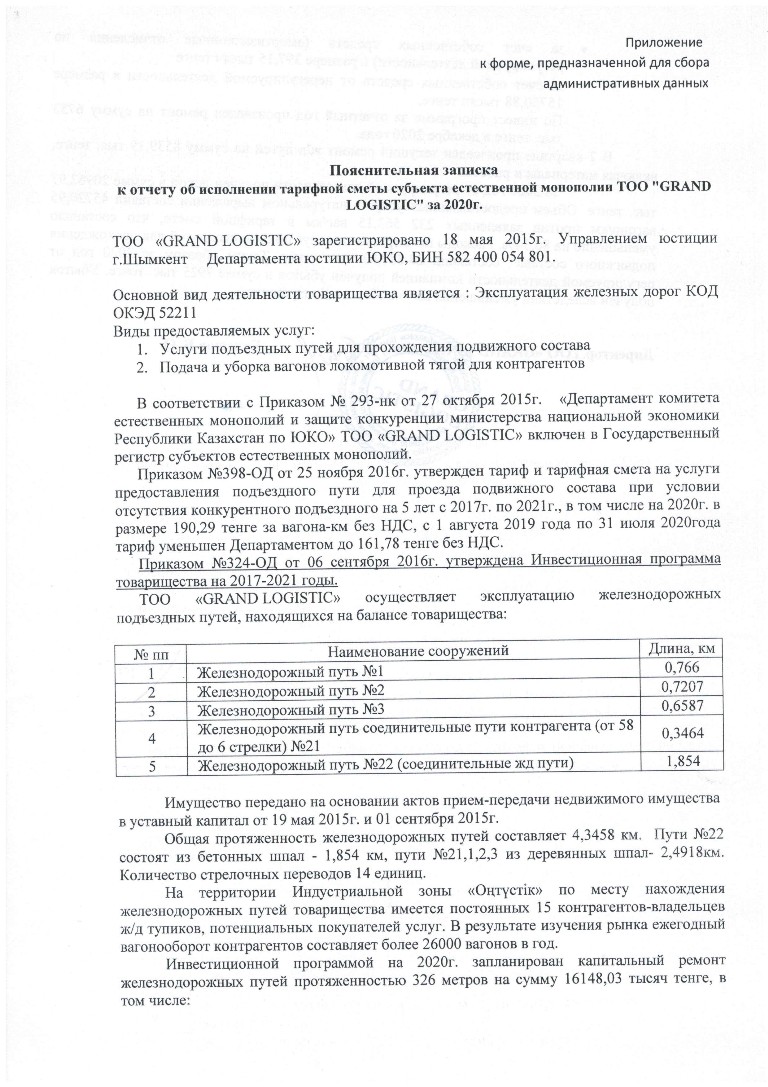 Пояснительное письмо (тар.смета) - ТОО GRAND LOGISTIC