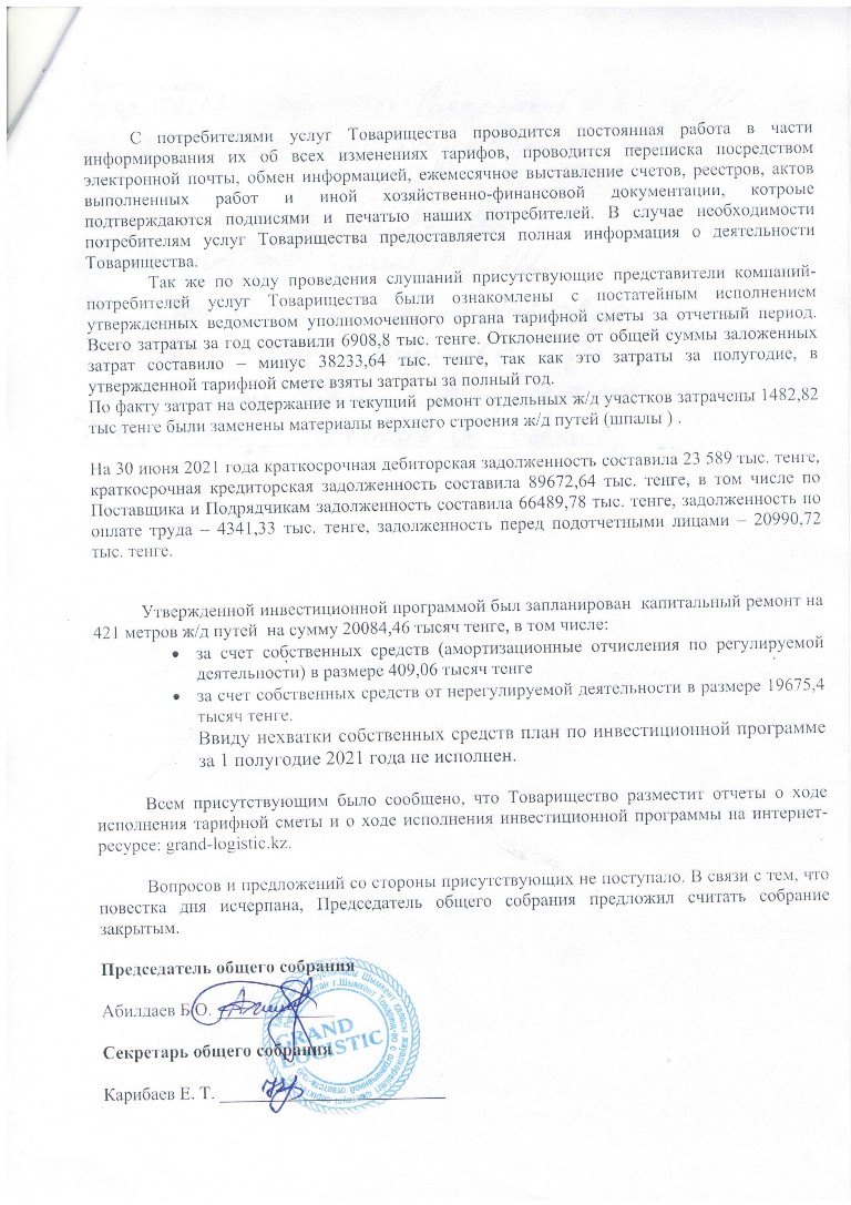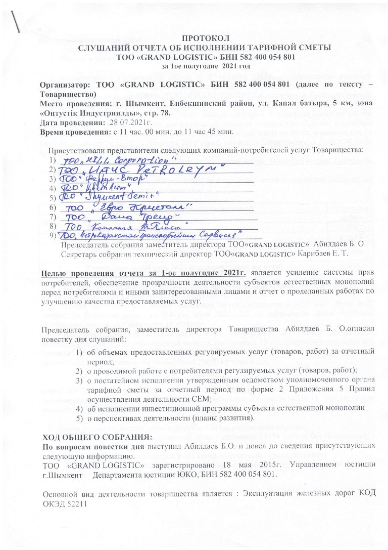 Протокол слушания ГЛ 1 п. 2021 - ТОО GRAND LOGISTIC