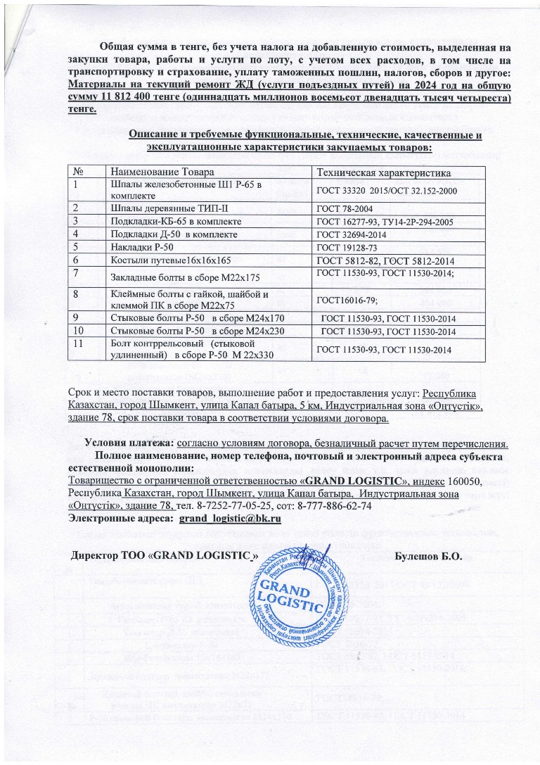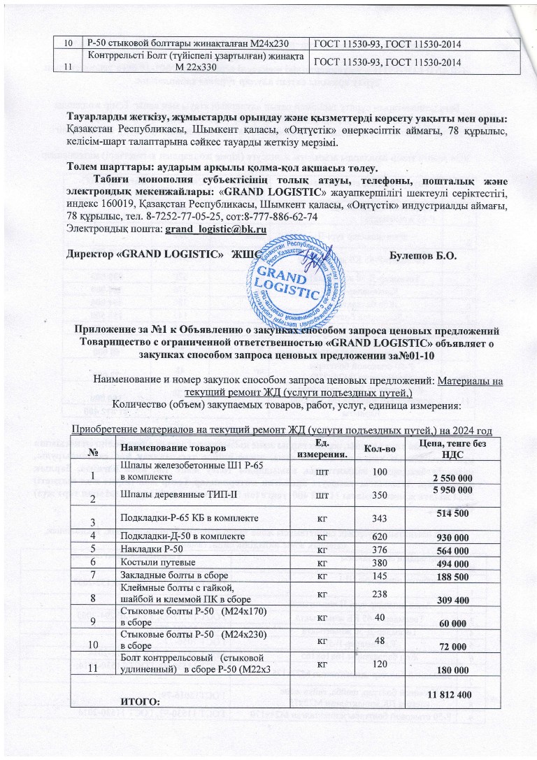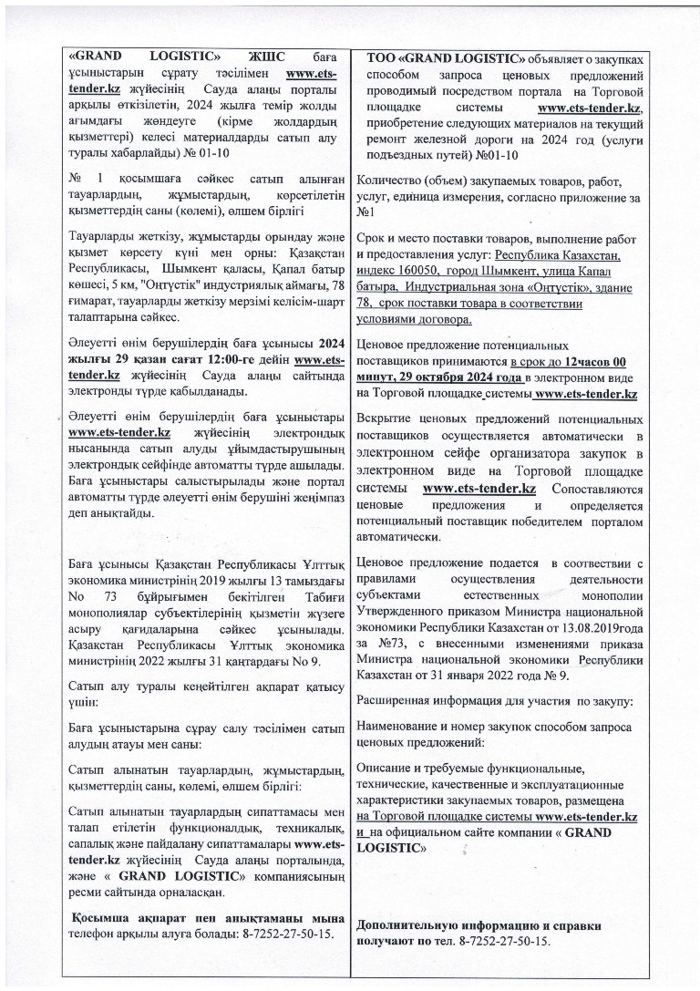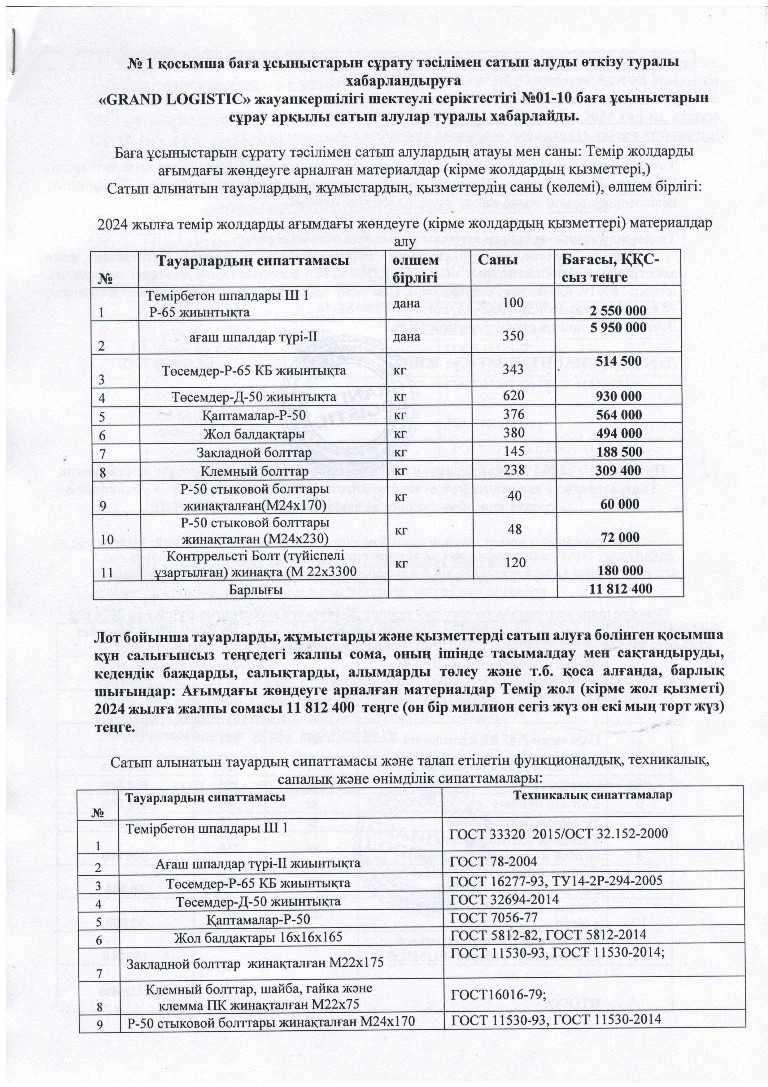 Объявление закуп ТОО Grand Logistic-24год - ТОО GRAND LOGISTIC
