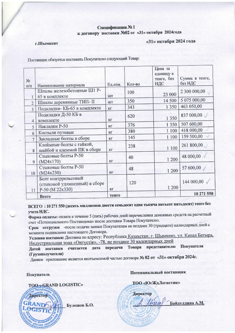 Объявление закуп ТОО Grand Logistic-24год