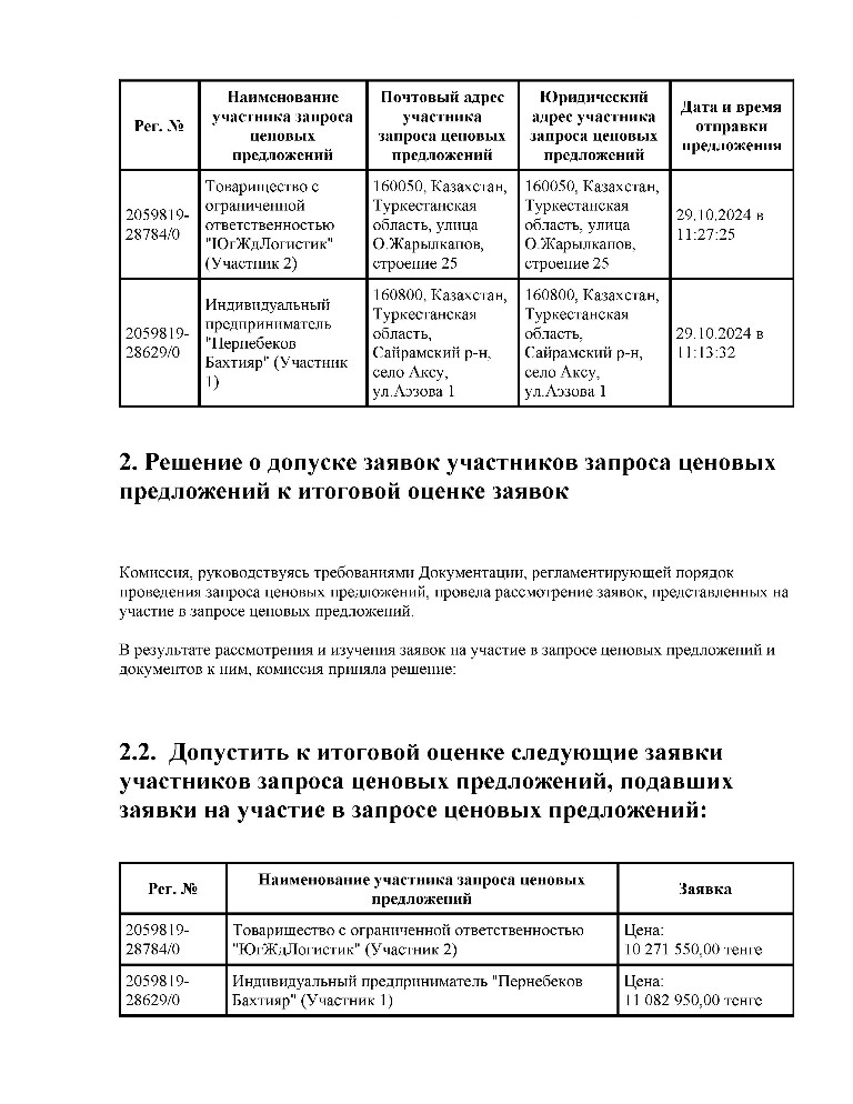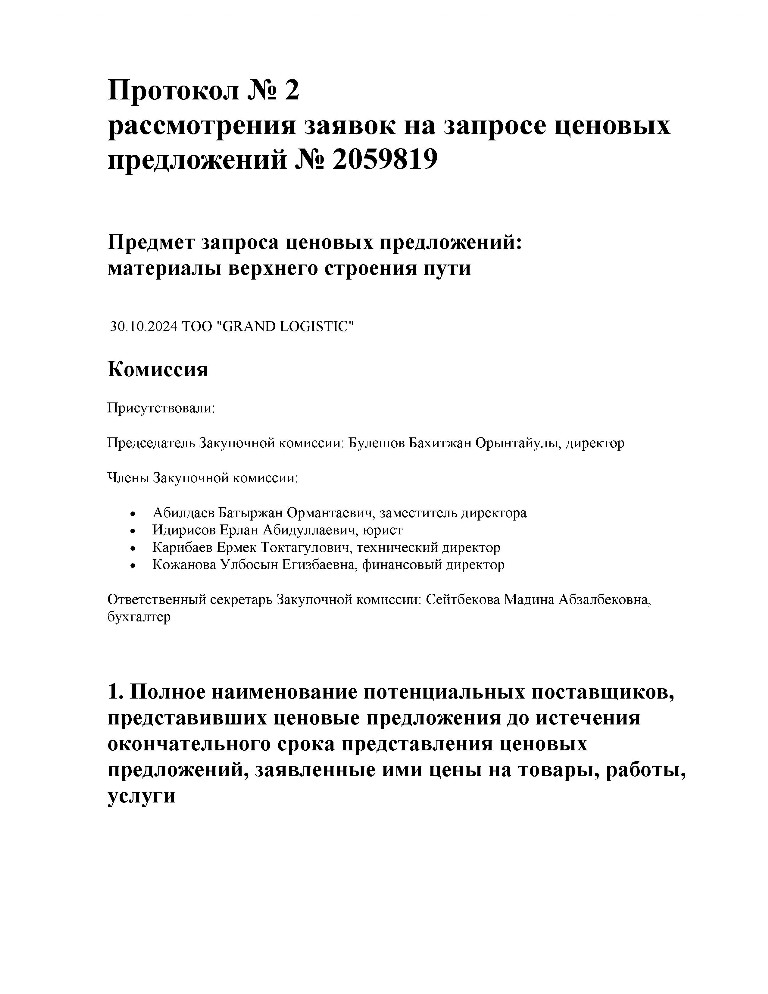 Проток-л №2 рассмотрение - ТОО GRAND LOGISTIC