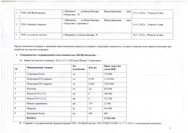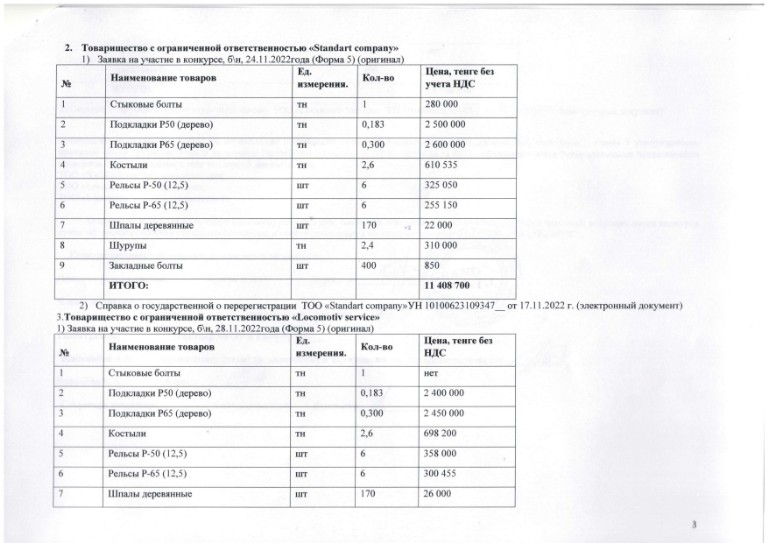 МАТЕРИАЛЫ ЖД для тендера 2021 г