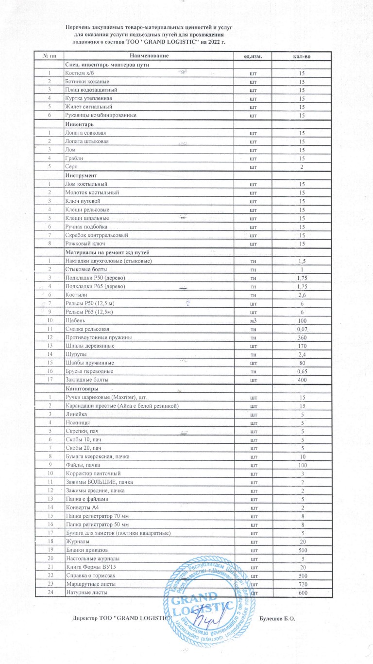 Закуп 2022 - ТОО GRAND LOGISTIC