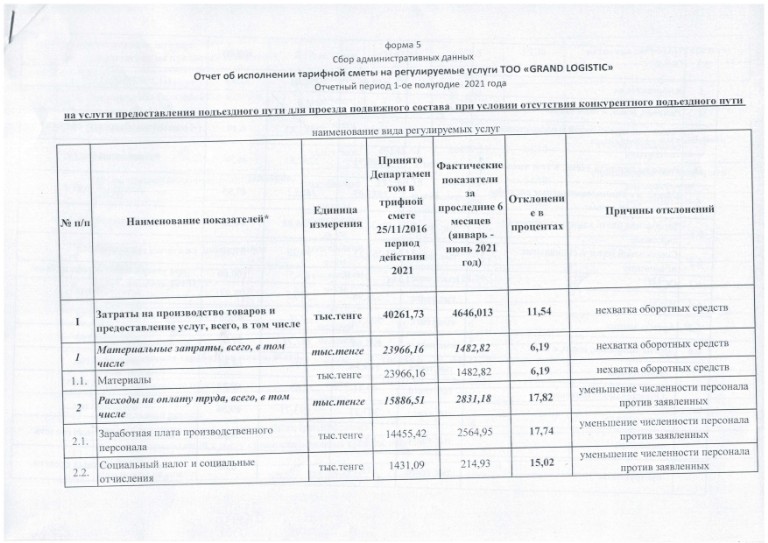 Форма 5 - ТОО GRAND LOGISTIC
