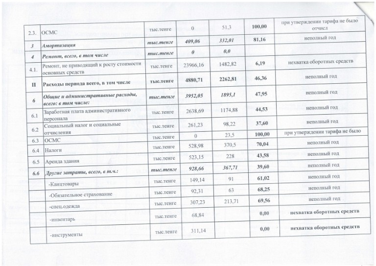 Пояснительная записка к отчету по исполнению тарифной сметы за 2018г