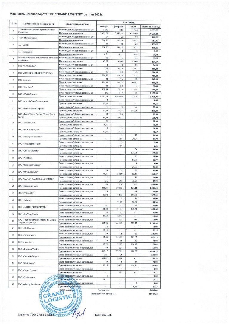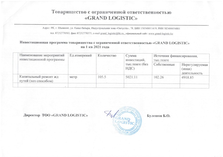 Инв.программа на 1 кв. 2021г. - ТОО GRAND LOGISTIC