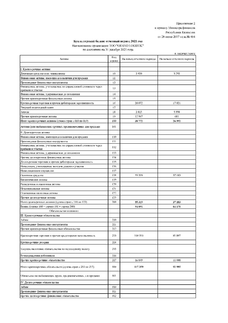 Бух.баланс 2021 - ТОО GRAND LOGISTIC
