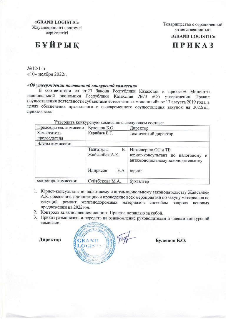 Приказ о созд конкур ком-ии - ТОО GRAND LOGISTIC
