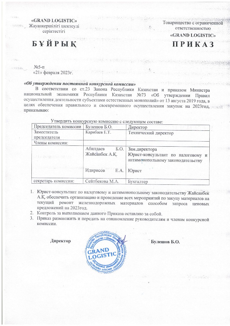 Приказ утвежд состава конурс комисс - ТОО GRAND LOGISTIC