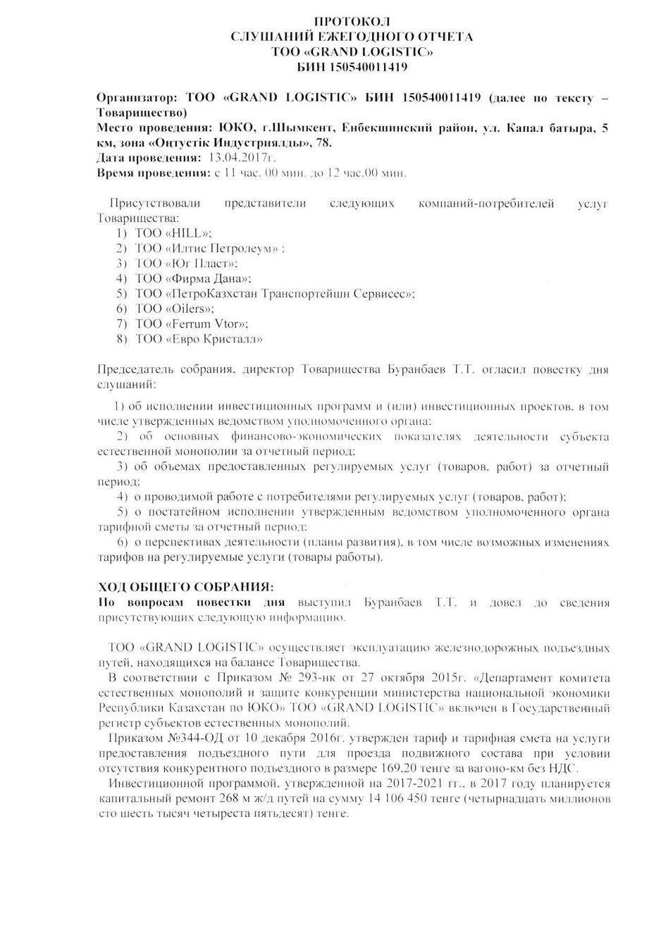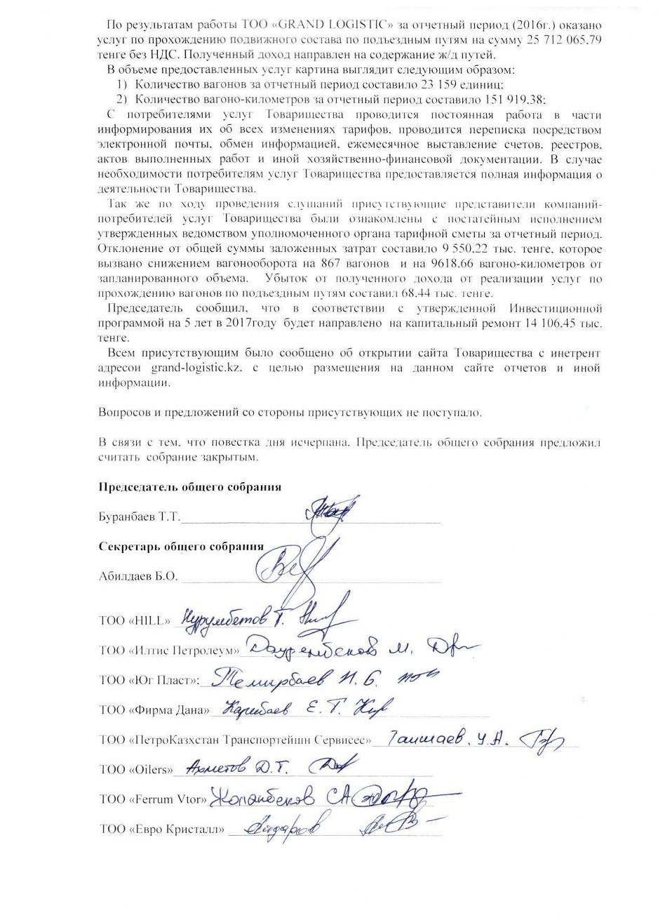Протоколы - ТОО GRAND LOGISTIC