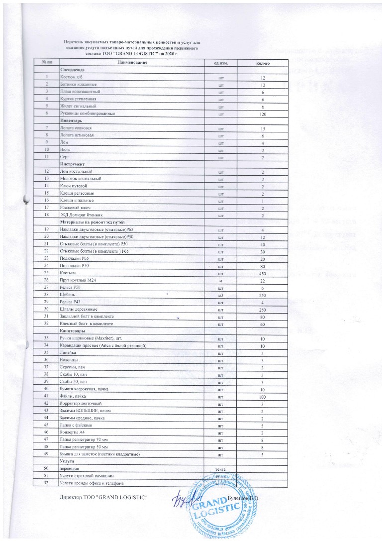 МАТЕРИАЛЫ ЖД для тендера 2021 г