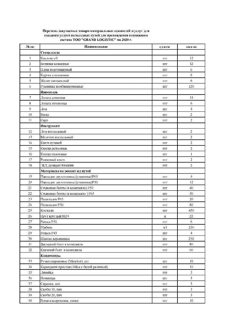 МАТЕРИАЛЫ ЖД для тендера 2021 г