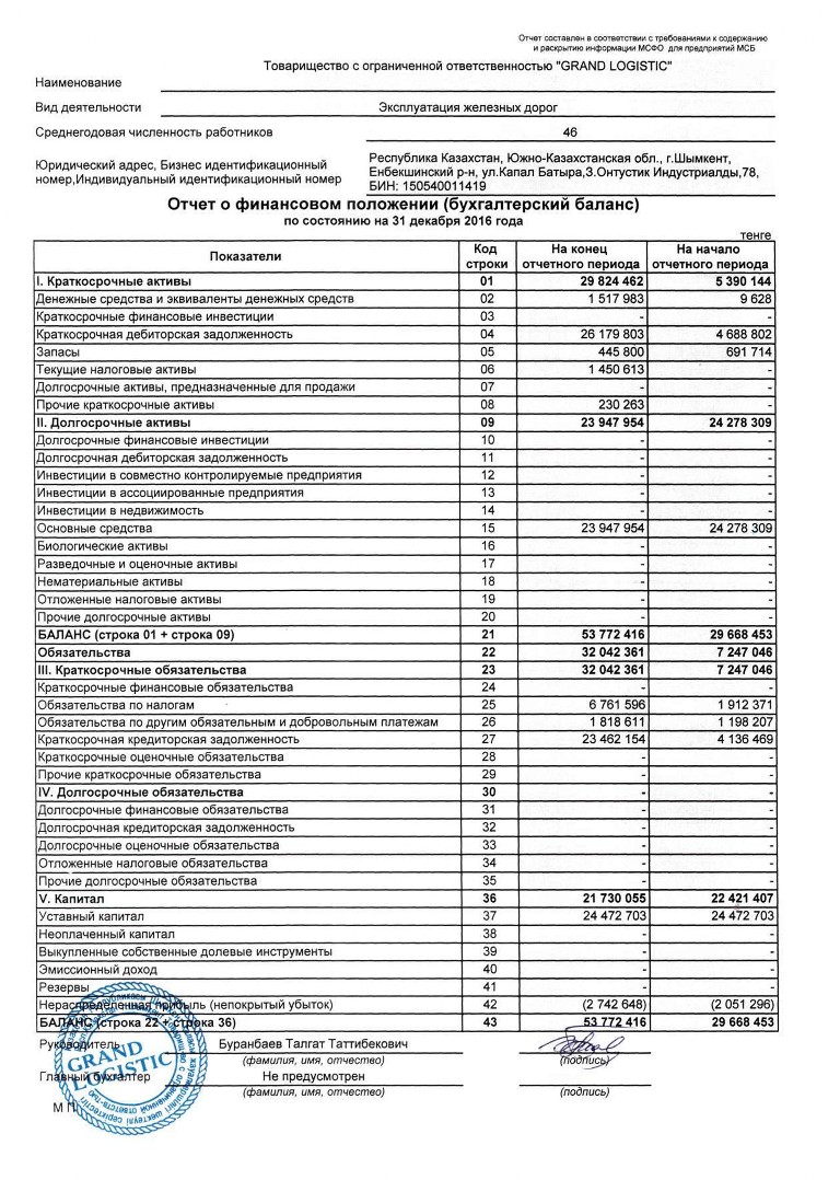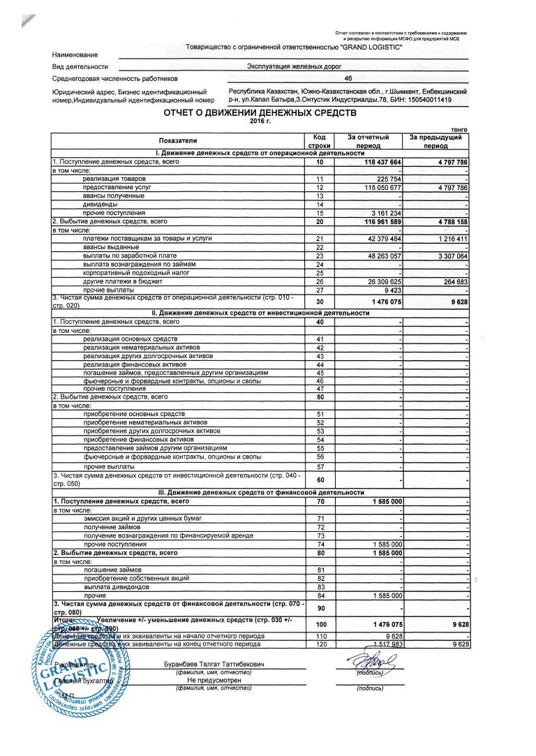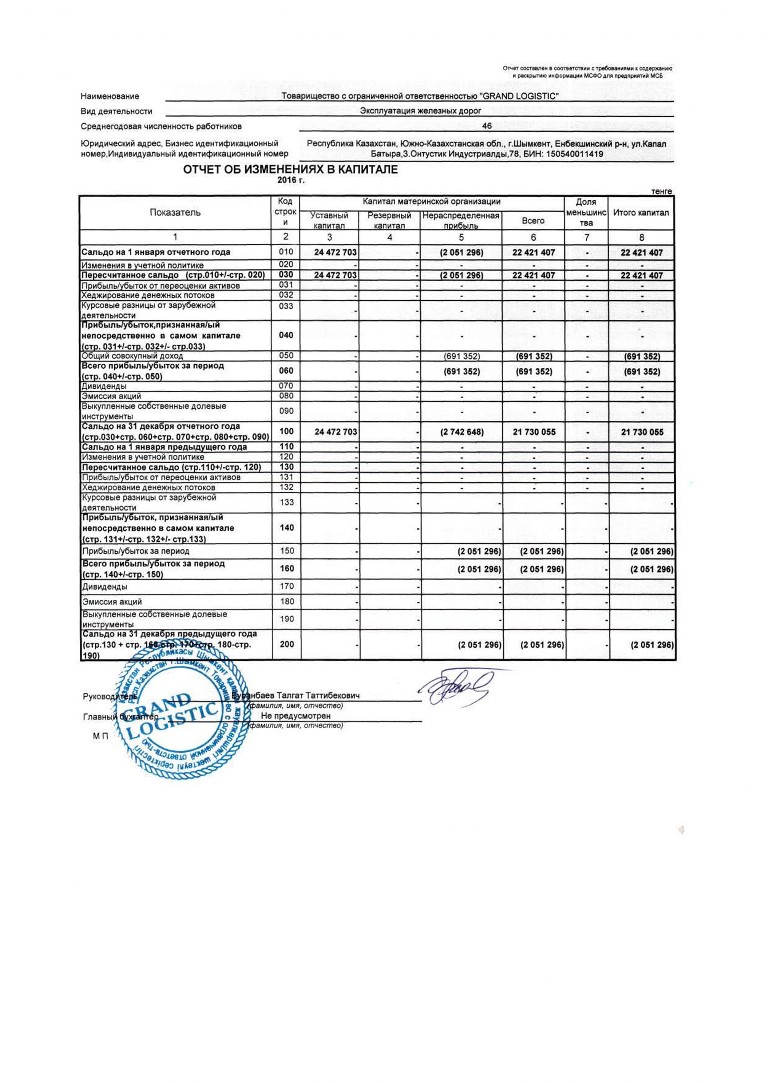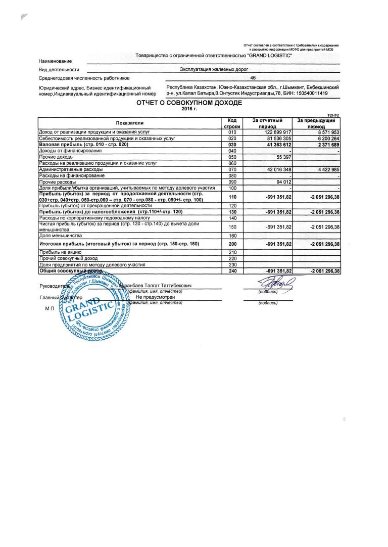 Отчет - ТОО GRAND LOGISTIC