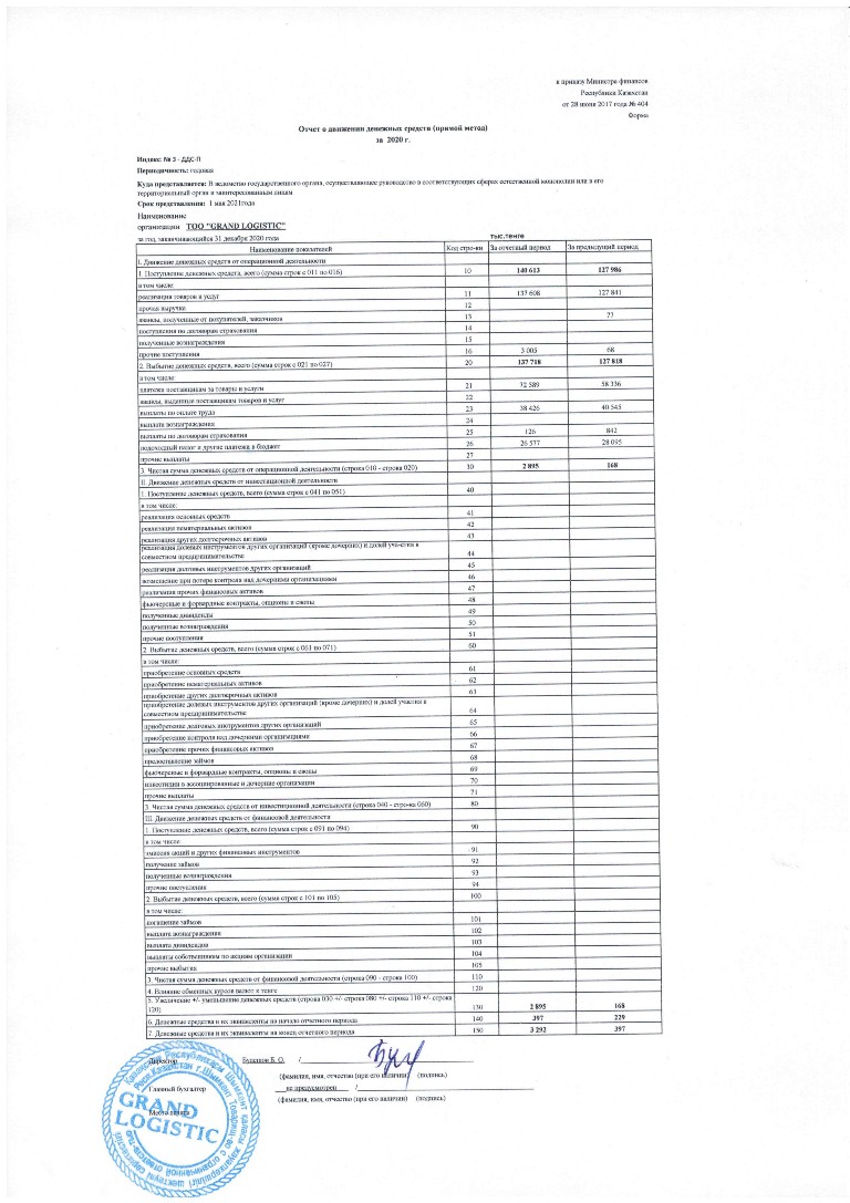 Отчет о ДДС - ТОО GRAND LOGISTIC