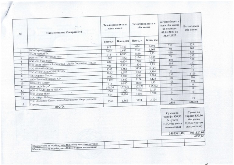 Вагонооборот КР - ТОО GRAND LOGISTIC