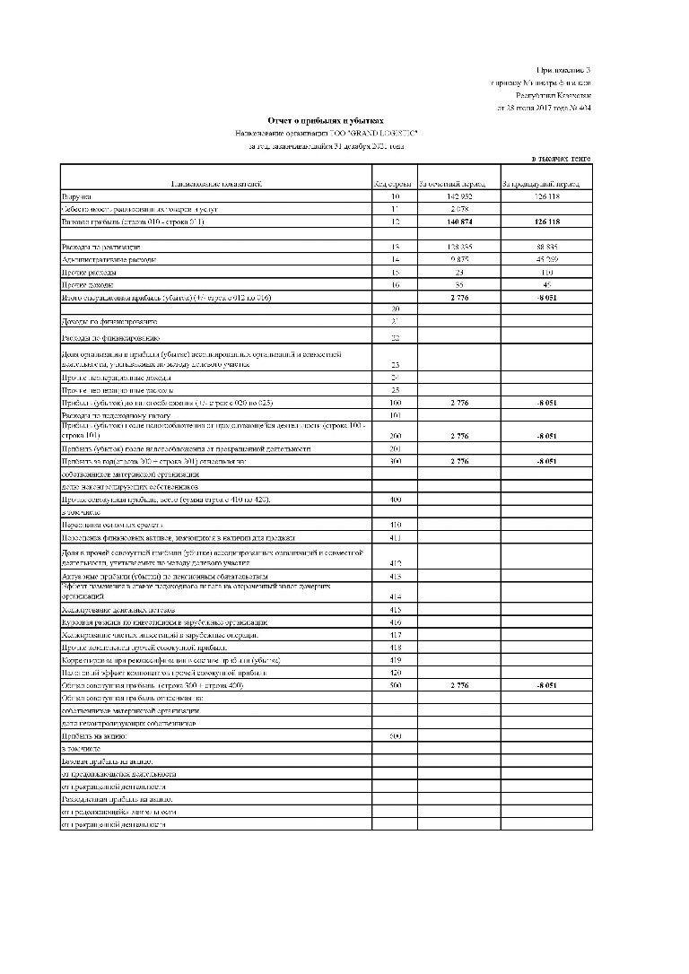 Отчет о прибылях и убытках - ТОО GRAND LOGISTIC
